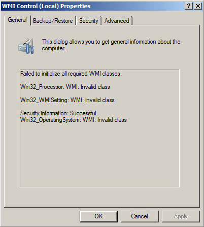 Si WMI funciona correctamente, mostrará Buenas propiedades. Si ve una clase no válida, entonces su WMI no está funcionando correctamente.